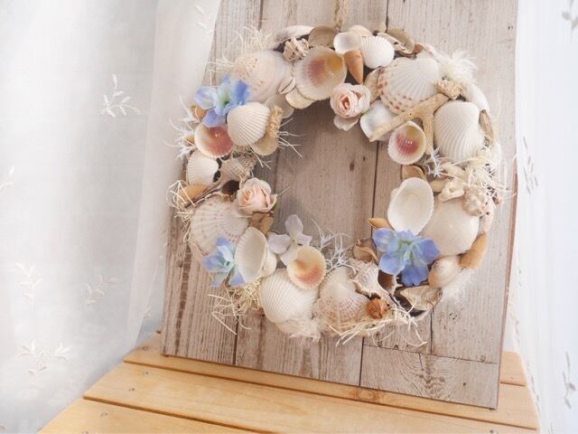 ボリュームたっぷりの貝殻で夏らしいリース❤︎