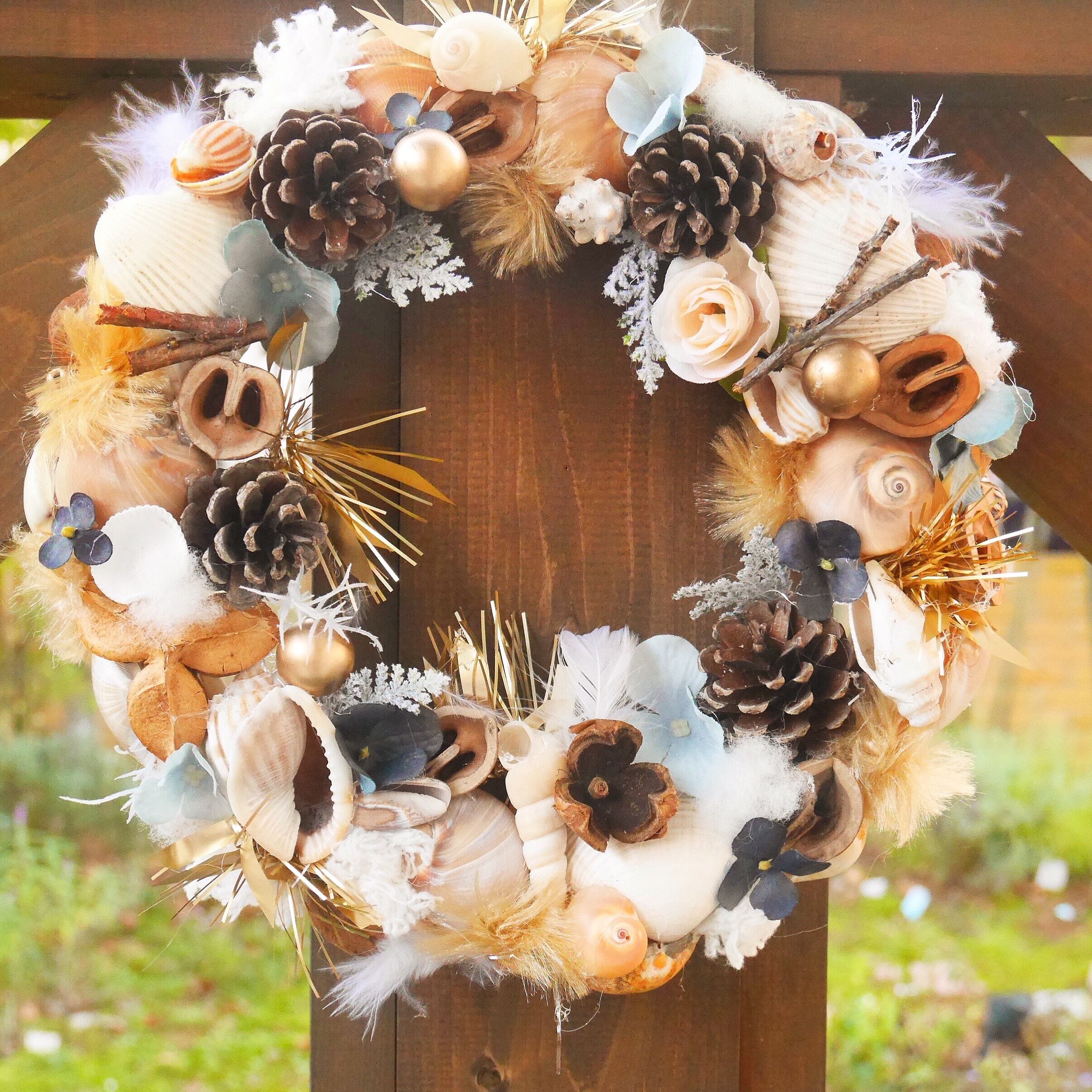 松ぼっくり、クルミ 、木の枝などのナチュラルカラーの装飾も取り入れました♡